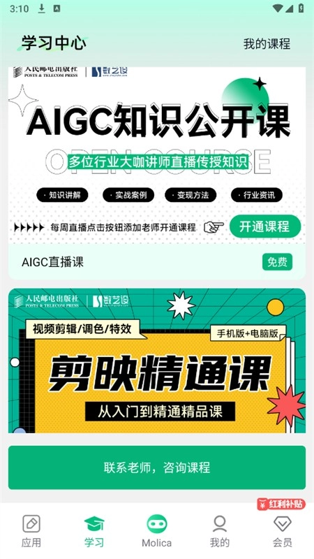 4、在学习页面还为大家提供了各种精品课程可以学习