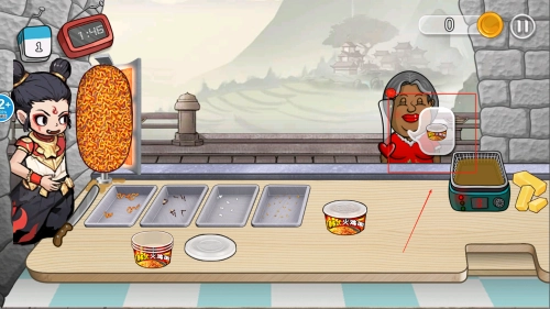 3、开始游戏后,按照顾客的餐点需求制作并完成相应餐点,随后便可收取餐点费用,这些费用将用于升级我们的店铺。