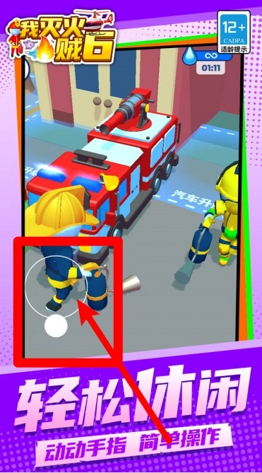 3. 简易操作体验:只需滑动左下方的虚拟控制摇杆,就能移动角色,移动方向轻松掌控,完成消防任务更加得心应手。