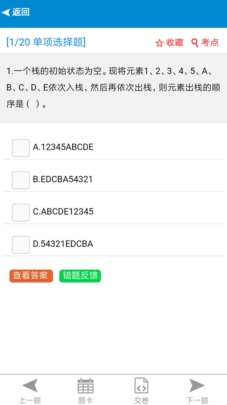 未来教育计算机二级考试题库app官方版提供了丰富的考试题目和答案,包括单项选择题、多项选择题、判断题、填空题、简答题等多种类型,涵盖了计算机二级考试中的各个知识点和技能要求。用户可以通过该应用程序进行系统性的学习和全面的复习,提高自己的知识水平和应试能力。