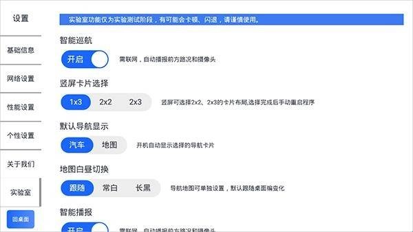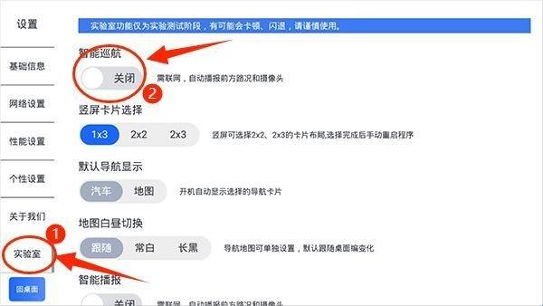 2. 在设置页面里寻找到“实验室”这一选项,进而找到“智能巡航”,然后将其启动。