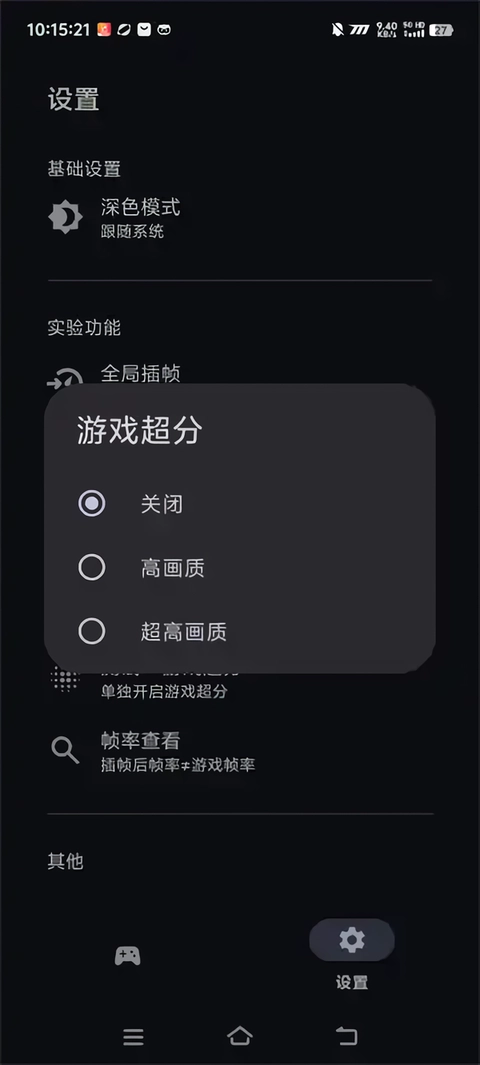 2、导入游戏后,挑选合适的功能,例如:全局插帧、插帧模式、触屏调节、Monster+、测试游戏超分、帧率查看等。