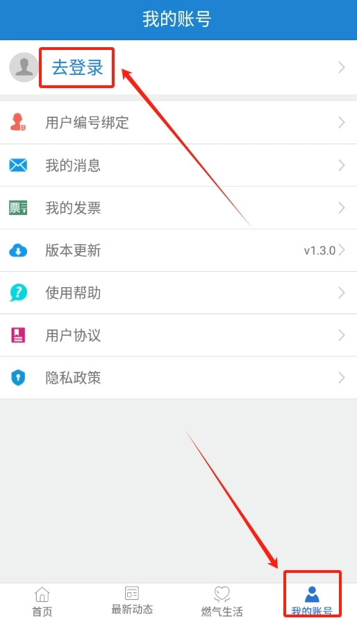1. 开启广元燃气缴费软件,在界面中找到“我的”页面并点击进入,随即可以看到登录按钮,点击完成登录操作。