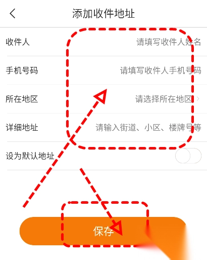 接着,按照提示框的指引,依次填入收件人、手机号、地址等相关信息,随后进行保存操作即可。