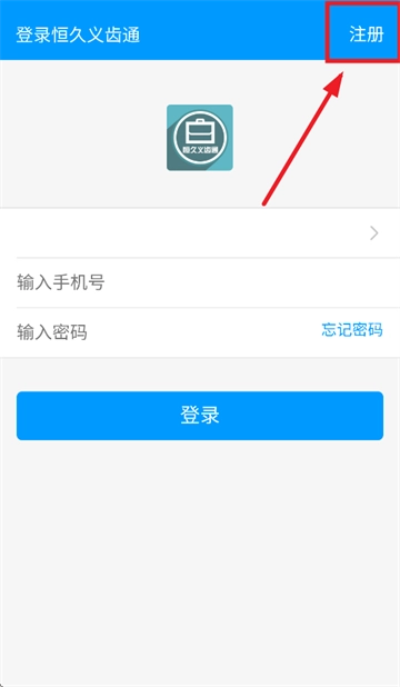 首先下载并安装恒久义齿通app,安装完成后打开该应用。待进入登录页面,点击页面左上角的注册按钮。