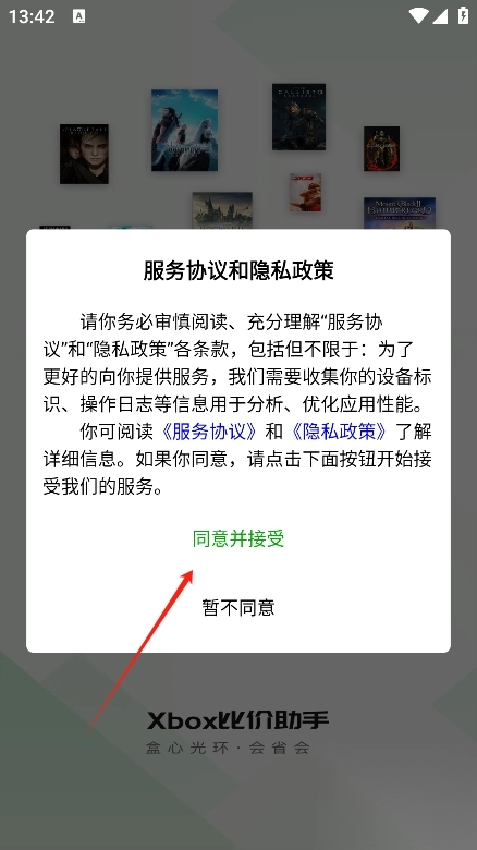 2. 进入后,阅读并同意Xbox比价助手App的用户协议。