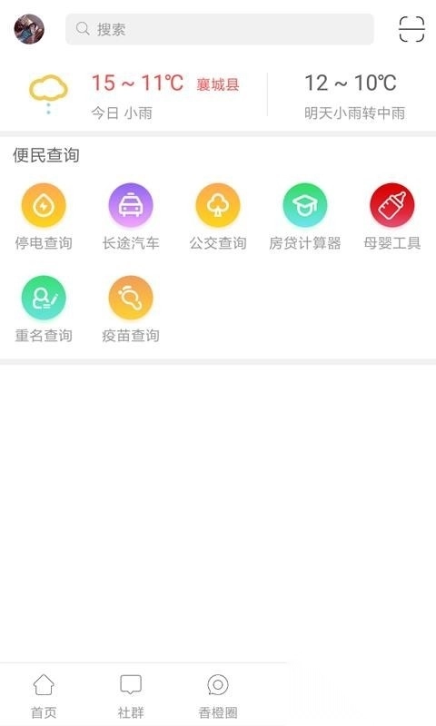 5、来到发行页面,在此能够开展停电查询、公交查询、天气查询等服务。