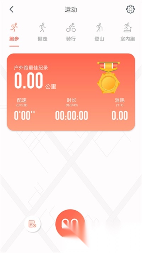 1. 用户进入软件后,即可开启对跑步、骑行、爬山等健康数据的记录。
