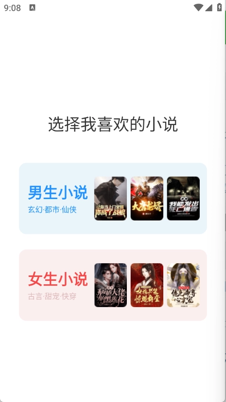 2.选择性别以及喜欢的小说类型以便为你精准推荐