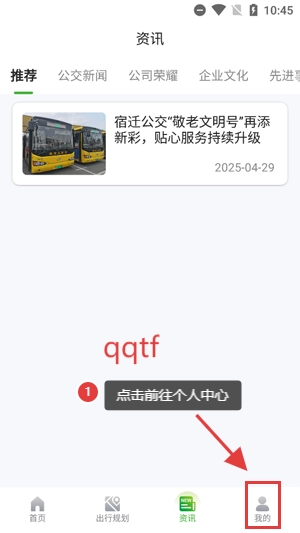 打开你的宿迁公交App,点击我的,前往个人中心。