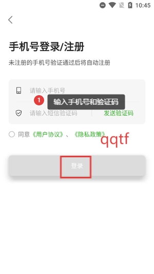 在登录界面输入你的手机号和验证码,点击完成注册。