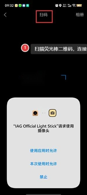 在设备界面点击扫码连接,扫描应援棒二维码进行连接。