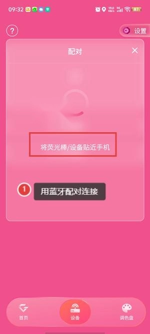 或者点击蓝牙配置,将应援棒靠近手机等待识别,并连接。