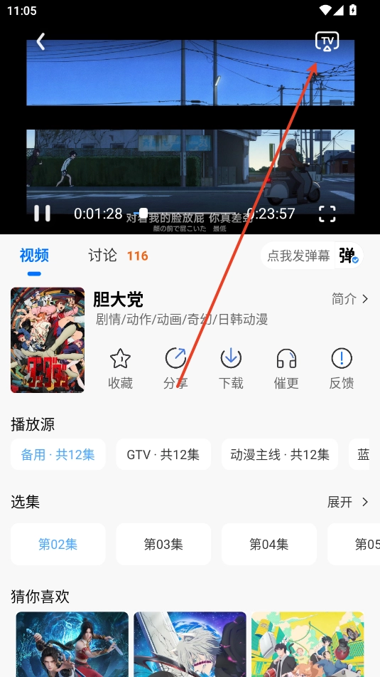 2.点击右上角TV投屏。