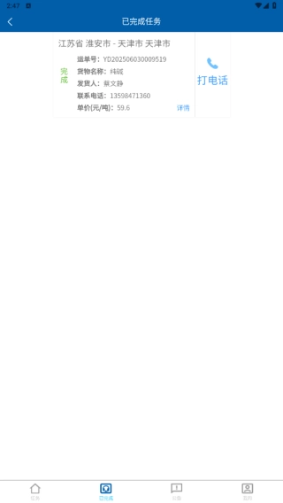 4、已完成任务都有详细的内容获取,让货车司机运输都可以更好去进行。