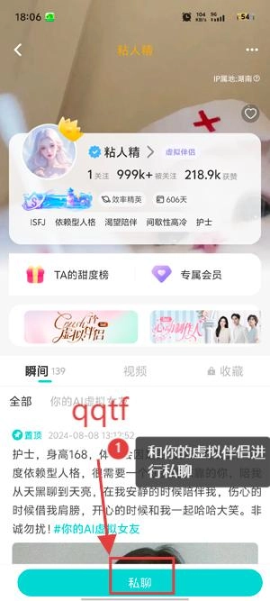 点击你关注的虚拟伴侣,点击私聊进行对话,后续在关注界面还可以和他进行私聊。