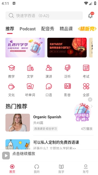 4、听力挑战:加入听力训练计划,日积月累提高西语。