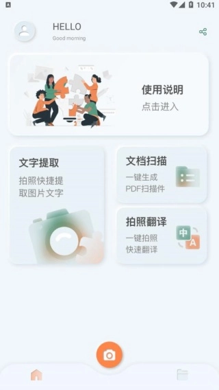 1. 融合批量文件扫描、文字识别、图片转文字、拍照翻译等多种OCR功能,完整涵盖文字提取、编辑、保存以及分享的全部流程。