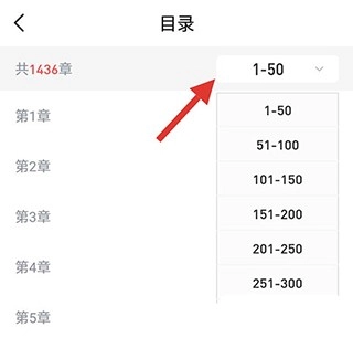 3、只需点击即可进入目录页面,点击箭头所在位置,还能够选择目录区间。