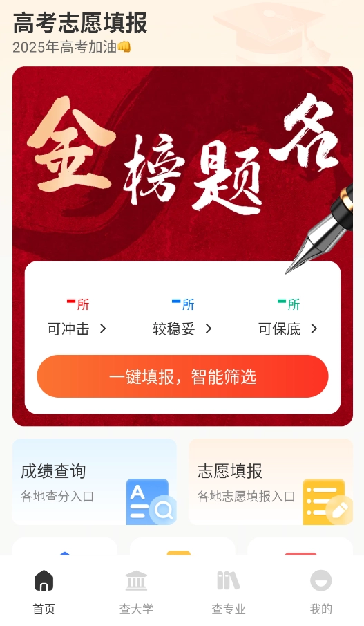 1. 打开志愿填报大师APP,点击“一键填报”功能,系统会依据个人实际情况,智能推荐院校。