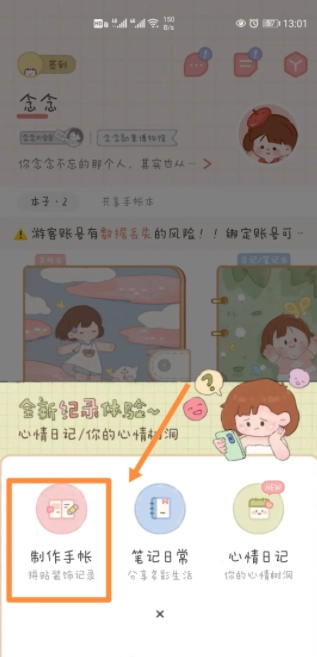 4. 操作完成后,找到刚刚设置好的手账,点击进入,此时就能够撰写文章了。