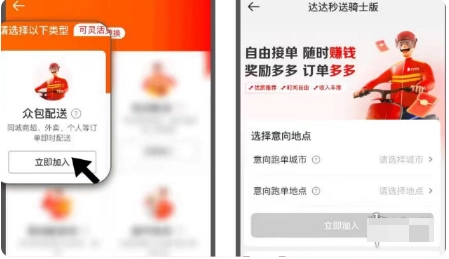 注册成功后,进入【众包配送】工作台页面,点击【立即加入】按钮,开始参与众包配送任务。