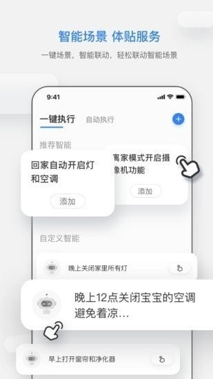 3、能根据用户习惯定制场景,实现设备联动,有效提升家居生活的便捷性。