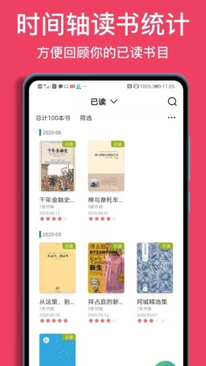 2. 独具创新的多维阅读统计系统,能够从时间、进度、类型等多个维度对阅读轨迹进行记录。借助数据可视化展示方式,阅读习惯清晰呈现,一目了然。
