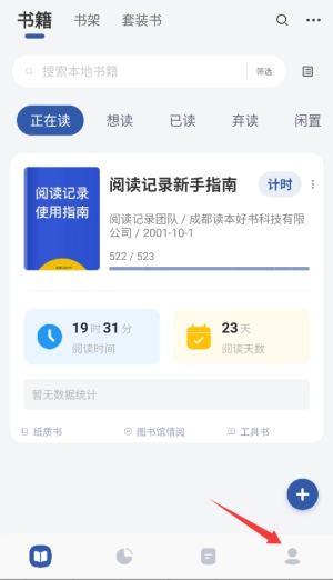 1、进入阅读记录APP后,点击底部导航栏"个人中心"图标,页面顶部会显示账户登录入口。
