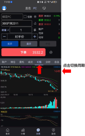 2、点击周期切换中的分时可切换到当前合约的分时图上