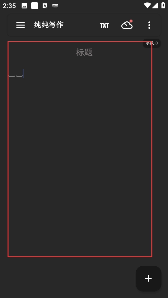 1. 在纯纯写作的界面中,点击右下角的“+”按钮,此时会弹出功能选项。