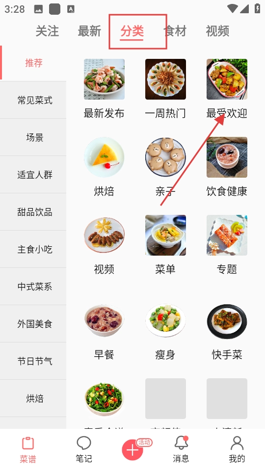 1. 在分类页面中,点击“最受欢迎”选项,即可进入最受欢迎菜谱的列表页面。