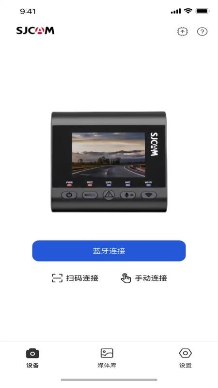 1. 打开SJCAM行车记录仪后,即可通过蓝牙或者扫码的方式连接该设备。