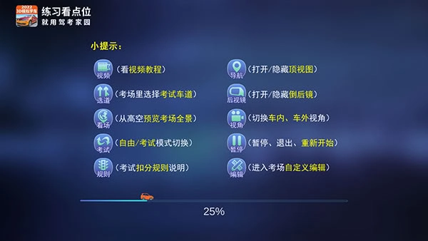 3、点击“开始模拟练车”按钮后,需稍作等待,加载期间可阅读一些实用的小提示。