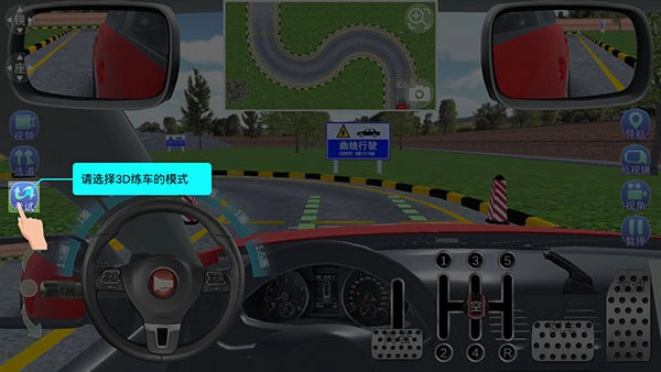 1. 开启驾驶模拟后,轻轻点击左方的“考试”按键,紧接着就能选择进入3D练车的不同模式。