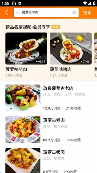 2. 在家常菜类别里选择“菠萝古老肉”这道菜。
