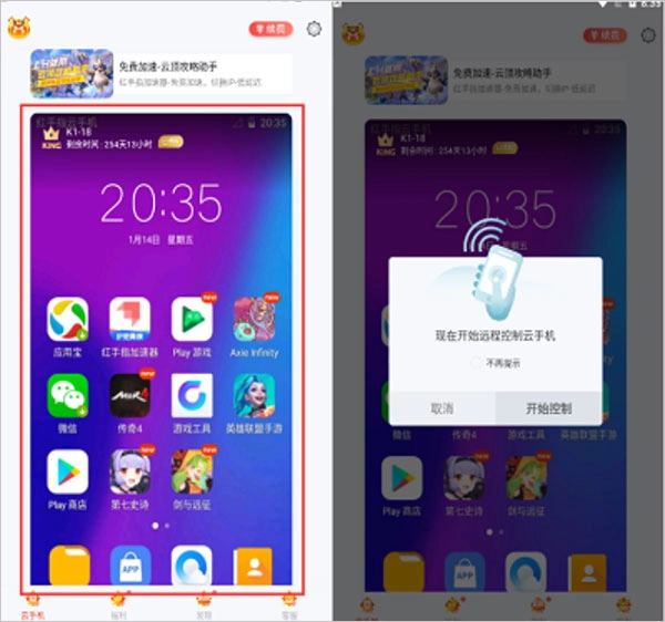 1. 云端托管服务:红手指具备把各类手机应用程序托管至云端服务器的能力。借助这一功能,用户无需在自己手机上安装相关应用,就能直接运行,如此一来,不仅能够节省手机的存储空间,还能提升手机的运行效率。