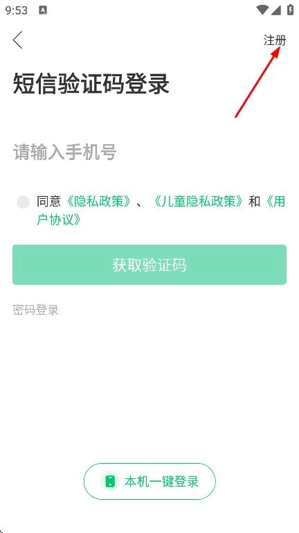 3、于登录页面处,点击“注册”选项,随即进入注册相关页面。