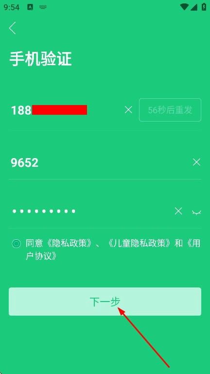 4、进入手机验证页面,依次填入手机号、验证码等相关信息,完成后点击“下一步”,以开展后续的注册流程。