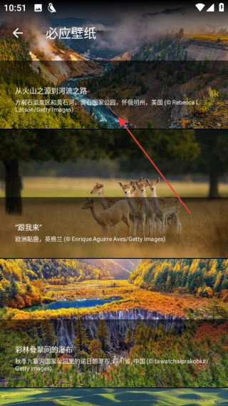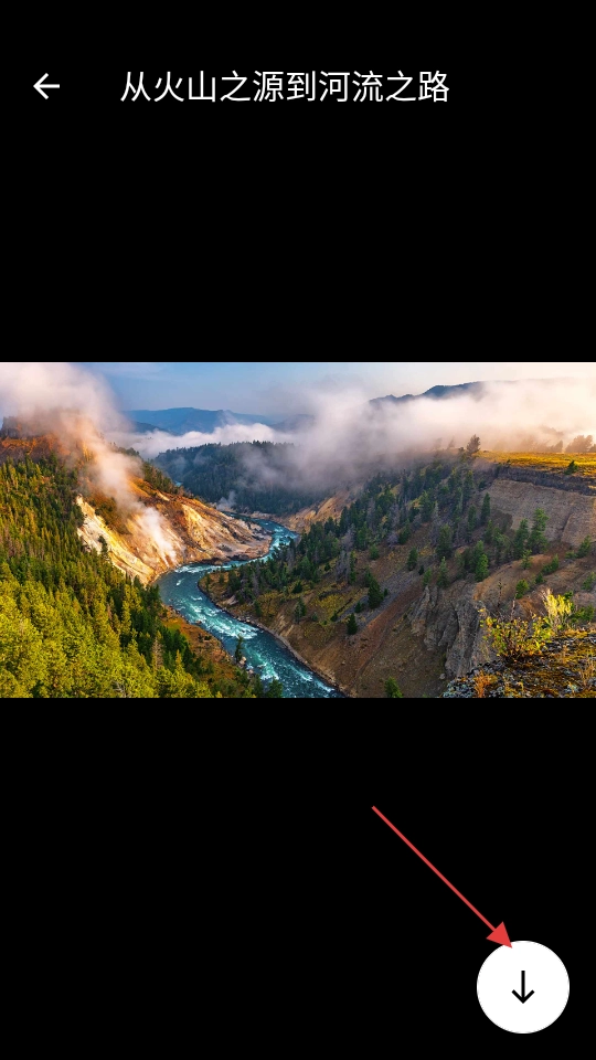 3、在必应壁纸界面,挑选从火山之源到河流之路这张壁纸,进而进入该壁纸的详细信息页面。