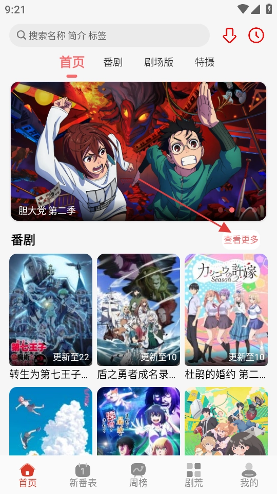 1. 于动漫类应用的首页,轻点番剧板块中的“查看更多”,即可进入番剧筛选页面。