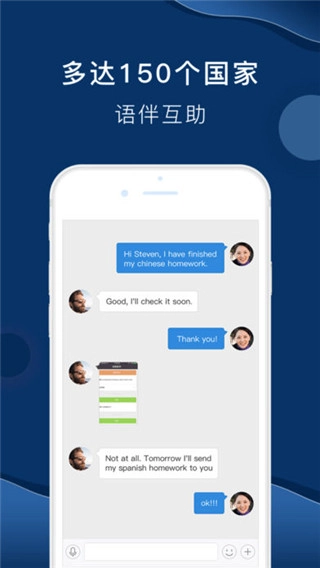 用户能够匹配到来自超过120个国家的语伴,借助互改作业、语音对话等方式达成语言交换,营造真实的社交场景。