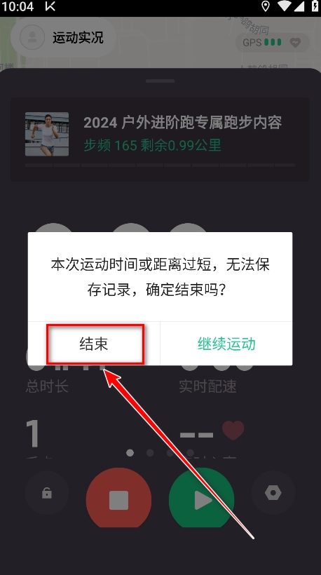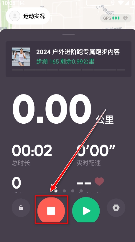 9. 跑步结束后,点击停止符号就可以了。