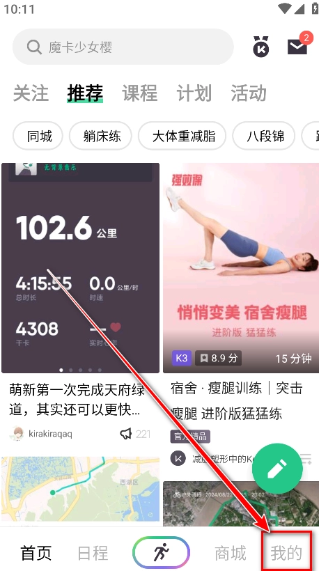 1. 开启Keep应用,轻点右下角“我的”选项。