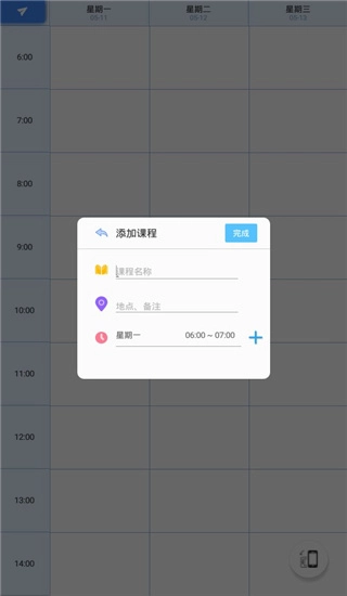 1. 具备记录上课与下课时间、地点以及设定课程名称的功能。