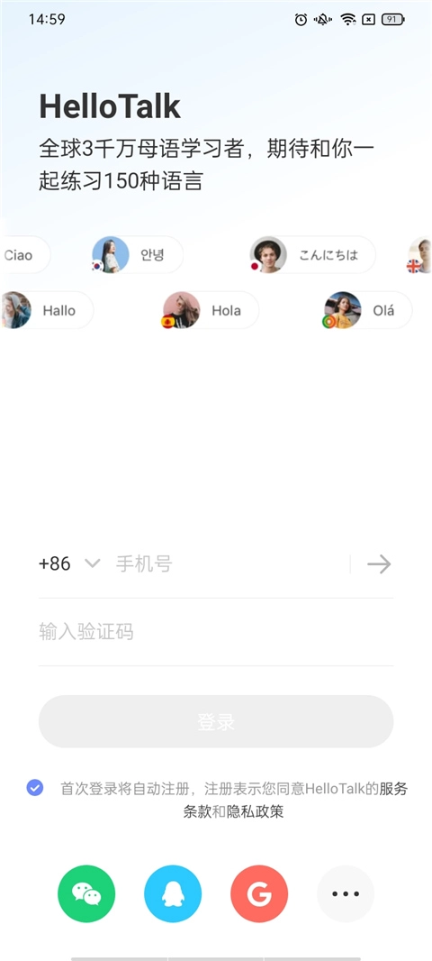 1、在安装HelloTalk软件后,打开该软件,软件提供微信、QQ或者邮箱等登录方式。