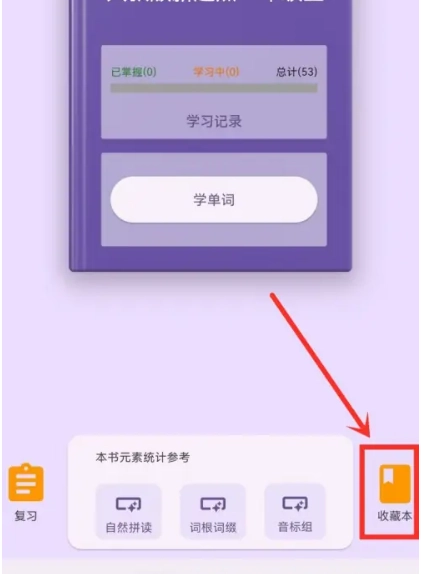 2、进入之后,再次点击【收藏本】,即可进入个人单词收藏区。