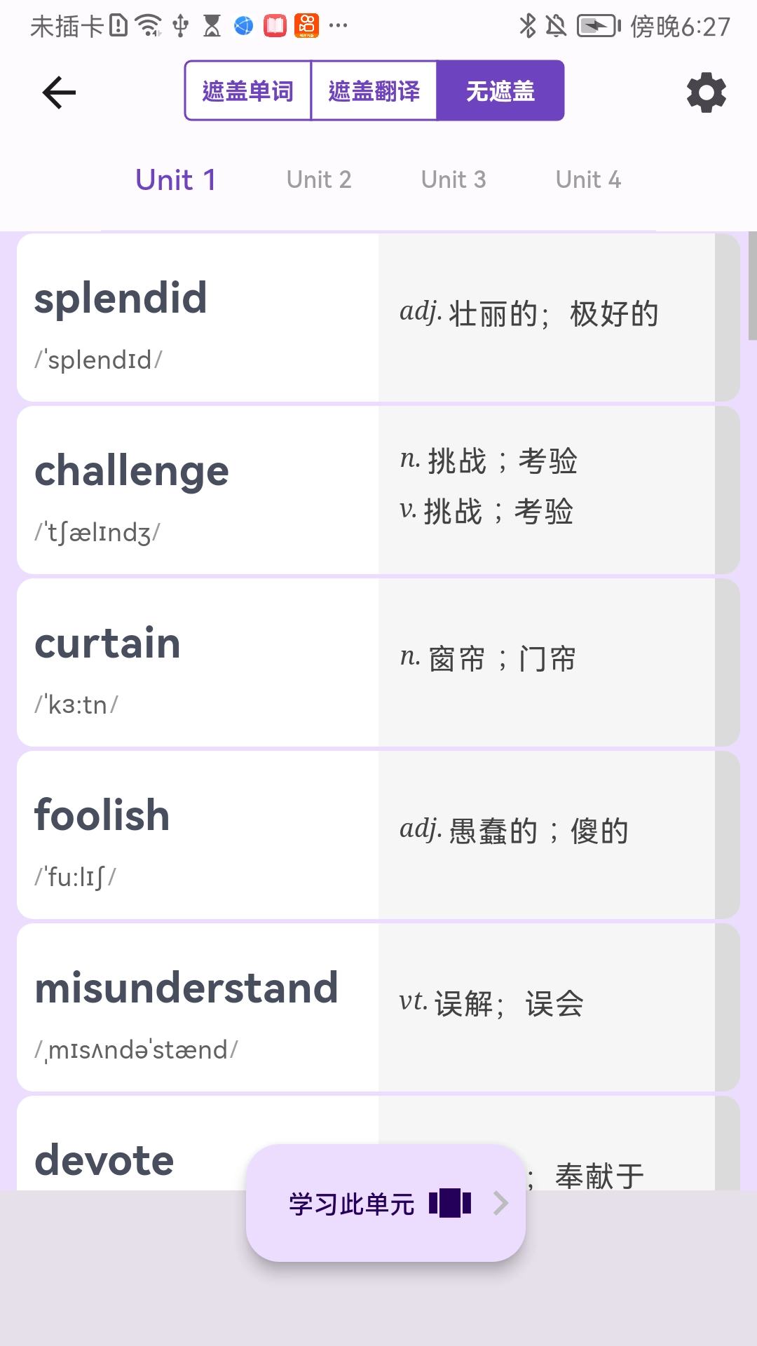 3、当进入单词书页面后,点击“学单词”按钮,即可开启学习。