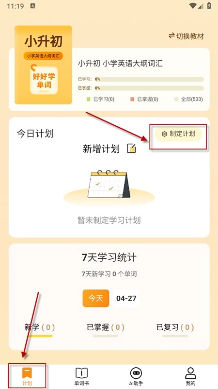 3、点击进入【计划】,在这里你能够自行设定每日背单词的数量,按照适合自己的节奏学习,不会感到压力过大。