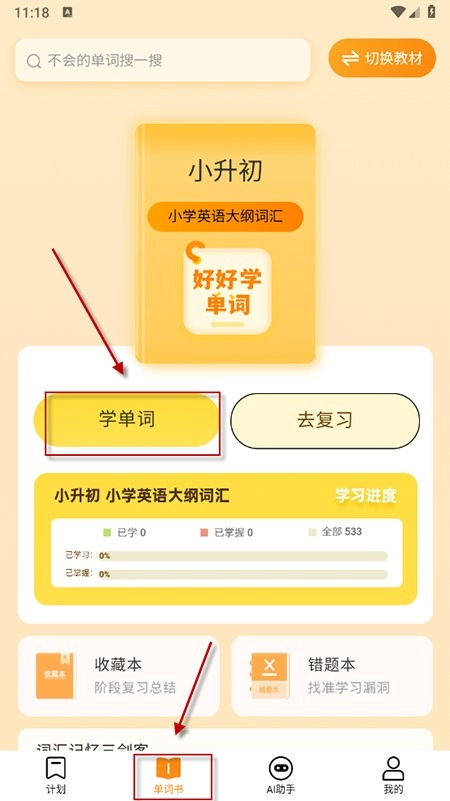 2、在单词书界面,用户能够选用不同教材展开学习。